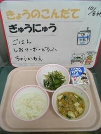 今日は、塩マーボー豆腐です。マーボー豆腐は、今から150年ほど前に中国の四川省という場所で食堂を経営していた女性によって考案されました。その女性の家の両隣がお豆腐屋さんとお肉屋さんであったため、手に入った食材で、来客をもてなしたのが起源といわれています。四川という場所は夏は暑く、冬は寒いので、その気候を乗り切るために、スパイスがピリッと効いた刺激的な味つけが特徴です。今日は、マーボー豆腐を塩味にしてみました。塩マーボー豆腐は「白いマーボー豆腐」とも言われています。少し珍しいかもしれませんがたくさん食べてくださいね。