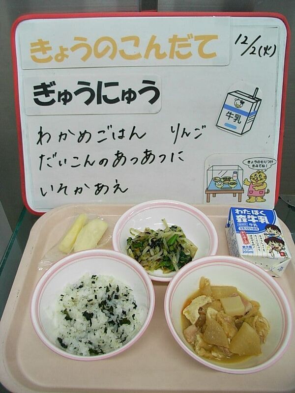 あっという間に大いちょうの葉も落ちて、冬がやってきました。今日も朝から冷え込んでいますね。今日は寒い日にぴったりの体が温まるだいこんが主役の煮物です。秋から冬に旬をむかえる野菜で、風邪予防にきく、ビタミンCをたくさん含んでいます。だいこんは部位によって味が違います。葉に近い部分は辛味が弱くかたいので、おろしやサラダに。真ん中部分は甘みが強いので煮物に。先端部分は辛味が強く、繊維も多いので汁物や漬け物にむいています。これからの季節、厚く切っておでんなどにいれると、とてもおいしいですよ。