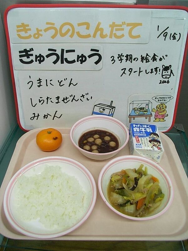 今日から3学期の給食が始まりました。これからの季節は、寒さも増して風邪などをひきやすい時季です。しっかり給食を食べて、元気に冬をのりきりましょう。