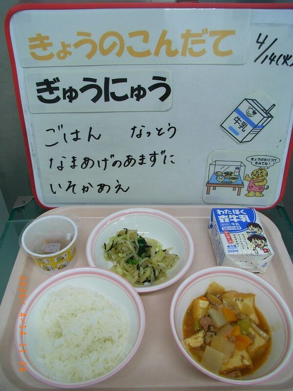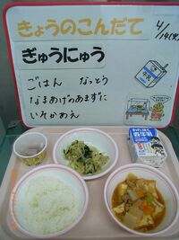 今日は生揚げの甘酢煮です。生揚げとたくさんの野菜を砂糖やしょうゆ、ケチャップなどで味付けしました。今日の味の決め手は「酢」です。酢は調味料の中でも最も古いものの一つで、塩とともに古代からあったと言われています。「塩梅(あんばい)」という言葉がありますが、塩と酢の二つをうまく使い、味加減を決めることから出た言葉です。寿司や酢の物をはじめ、ドレッシングやマヨネーズなどを作ったり、材料の下ごしらえにも使われたりします。最近では「飲むお酢」などもあり、健康にもよい、とても万能な調味料です。