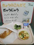 10月14日は岩槻小学校の開校記念日です。少し早いですが、お祝いの気持ちを込めた特別メニュー「セルフフィッシュバーガー」の給食です。パンには切れ目が入っているので、自分でパンにお魚とコールスローサラダを挟んで食べてくださいね。秋が旬の「栗」と「さつまいも」がはいった「栗とさつまいものクリーム煮」と一緒に、特別メニューを食べながら、みんなで岩槻小学校の記念日をお祝いしましょう。そして今日、10月...»続きを読む