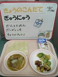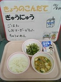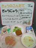 今日は、「図書館祭り」第2弾です。今日は「ぐりとぐらとすみれちゃん」より「かぼちゃコロッケ」です。「ぐりとぐら」シリーズは、みなさんも一度は読んだことがあるのではないでしょうか。大きなパンケーキも有名ですね。今日は、自分で個包装の刻みのりをかけてたべる和風スパゲッティと、粒マスタード和えと組み合わせてみました。ちょっぴり大人な和風の給食、味わって食べてくださいね。 »続きを読む