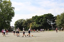 高学年の体育はサッカーです。今日は6年生。盛り上がってました。