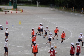 10/2(木)高学年はサッカーの学び。足だけでボールを扱うのはなかなか難しい。