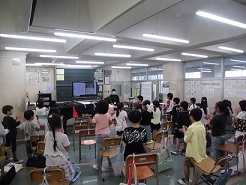 2年生が音楽室で今月の歌「風になりたい」を元気に歌っていました。