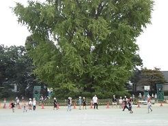 10/9(木)大イチョウのもとで昼休みに元気に遊んでいます。いい笑顔!!