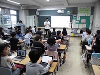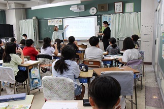 10/7(火)岩槻高校との交流会がありました。高校生26名が各教室で1日一緒に生活しました。