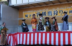 岩槻鷹狩行列では5年生有志6名が寸劇を披露。家康将軍役の方との掛け合いは見事でした。
