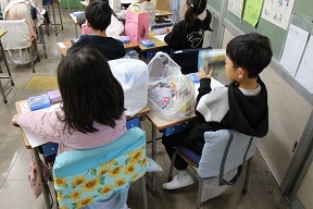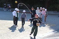 以前いただいた大谷グローブを使ってキャッチボールをする2年生です。今日から順番に学年で使っていきます。