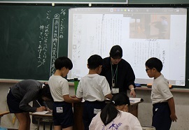 先生と学びを深める4年生。兵十の気持ちの変化を読み取ろう…でした。