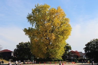 岩槻小のシンボル、大イチョウが黄色く色づいてきました。