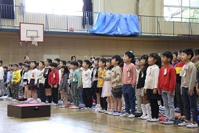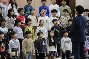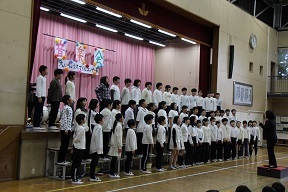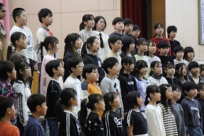 最初は全校での合唱。岩槻小の音楽会は「あい」あふれる会になりました。