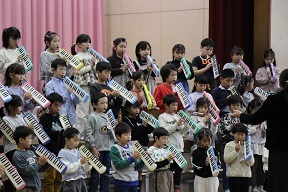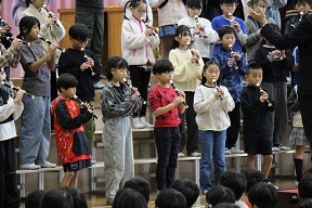 3年生。あい言葉。みんなが笑顔で過ごせるように…。初めてのリコーダーも披露してくれました。