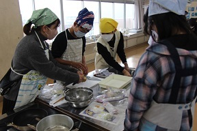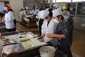味噌汁づくりの調理実習は5年生。具はそれぞれが持ってきています。おいしくできたかな。