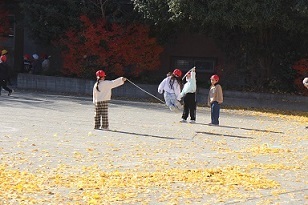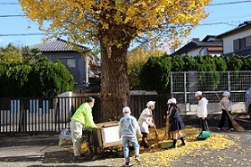 12/4(木)23タイムに落ち葉はきをしてくれている2年生。ありがたいです。イチョウの葉がどんどん散っていきます。