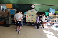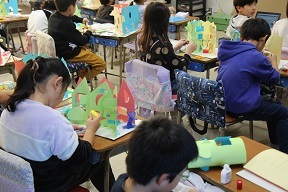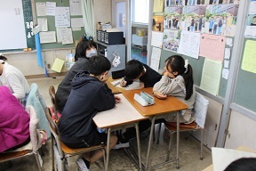 町たんけんについてまとめ発表の準備をしているのは2年生。