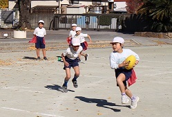 12/5(金)フラッグラグビー。元気よく走り回っている3年生。
