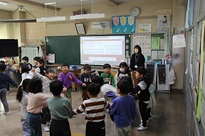 1年生は歌をうたいながらリズムにのって楽しそうです。