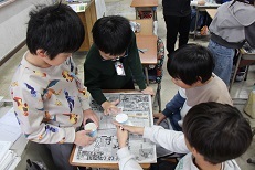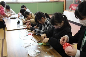 12/8(月)今日はクラブ活動の日です。人形クラブでは岩槻伝統の木目込み人形作りです。