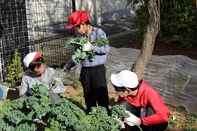 なかよし学級、ヨーロッパ野菜の収穫です。農家さんに来てもらっていろいろアドバイスをいただきながら収穫しました。