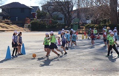 23タイムの校庭ではたくさんの子が遊んでいます。今日は太陽が出て日差しが気持ちいです。