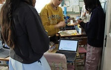 12/18(木)朝、代表委員の子が集まって、募金の準備をしています。