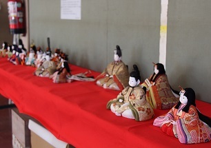 地域の方の協力によりひな人形を展示しまし。南校舎の昇降口です。ぜひ見にいらしてください。人形の町岩槻。