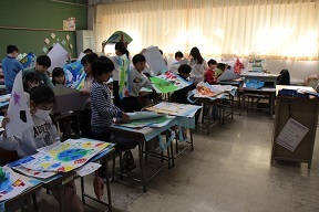 1年生の教室ではこの1年の思い出を大きく絵で表していました。