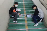 6年生の卒業ボランティア。階段に掲示する学習タグをつくってくれました。教室配置が決まったら貼ります。ありがとう6年生!!。