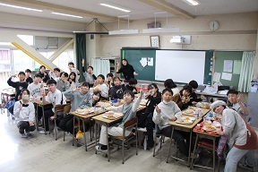 小学校生活最後の給食です。おいしく楽しくいただきました。