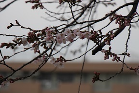 3/23(月)岩槻小の桜も開花しました。明日の卒業式にはもう少し花が見られそうです。